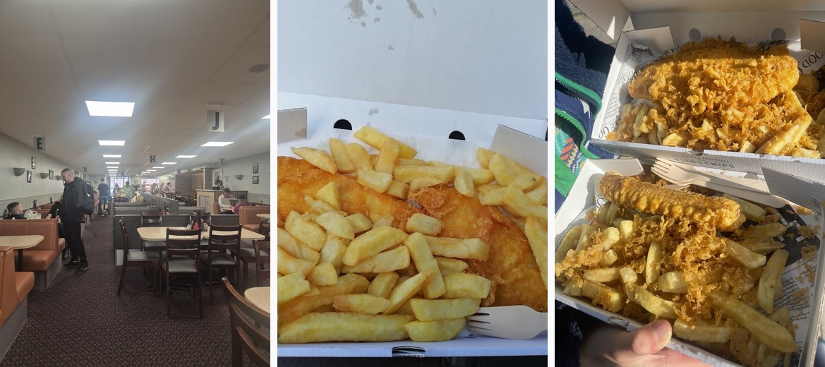 Popped in for a takeaway fish supper about half an hour before closing, was greeted & served by a friendly & efficient young man. We ordered medium haddock x2, large chips & scraps. & some sauce sachets.Everything was freshly cooked. The fish were generous fillets & perfectly cooked. Chips were decent & a lot of very naughty but extremely delicious crunchy scraps. Paid slightly under £20 for a very good meal which we enjoyed very much. I recommend this restaurant, there is a big eat in section if you fancy that as well as the takeaway section. Thanks very much!