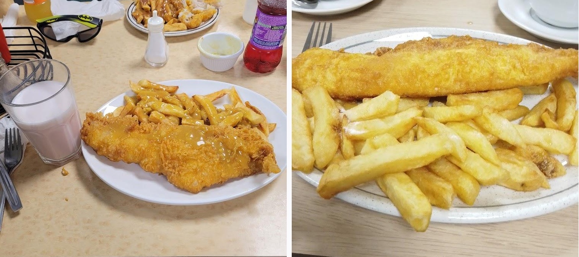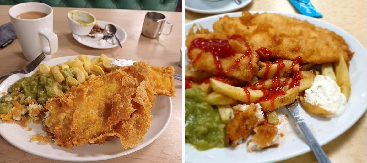 Best fish and chips I have had in Scarborough the batter on the fish looked crispy but was light and tasty. Chips where cooked just right. Could not fault the service. Place is clean and tidy they are also dog friendly.